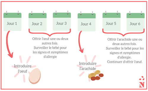 Pour prévenir les allergies alimentaires, il est recommandé d’introduire les aliments allergènes un à la fois en suivant la méthode ci-dessous :